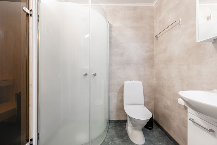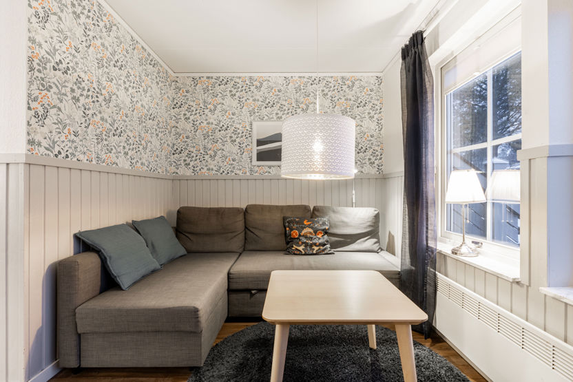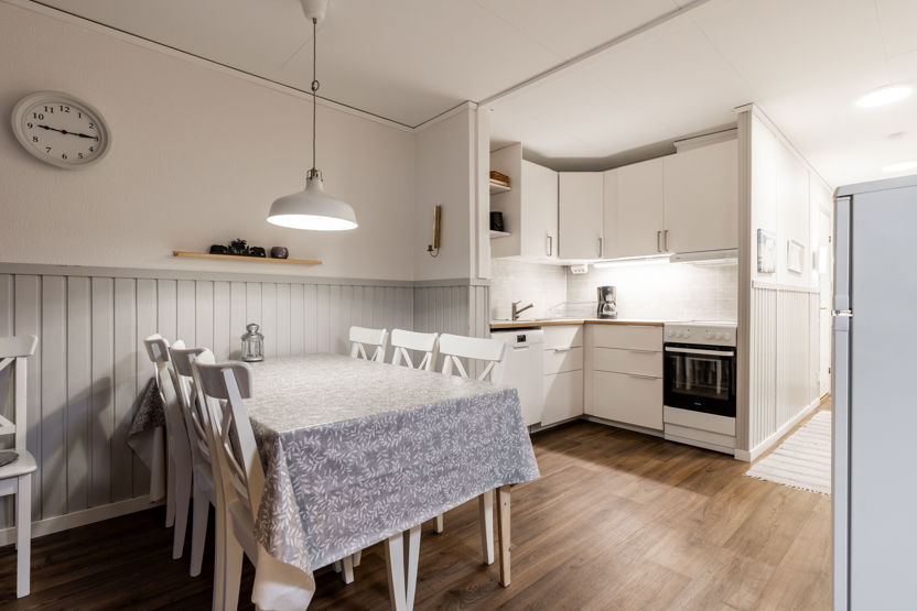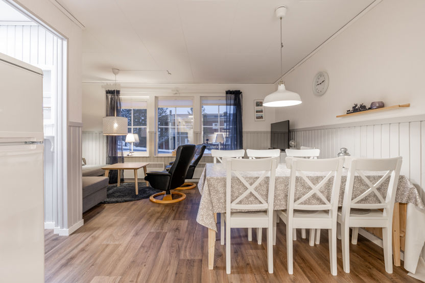 Fräsch lägenhet i markplan med plats för upp till 8 personer. Här är det öppen planlösning med köksavdelning, matplats och TV - hörna. Sovrum 1 har en våningssäng, sovrum 2 har två våningssängar. I TV - hörnan kan bäddsoffan bäddas för 2 personer. Välutrustad köksavdelning med spis, diskmaskin, micro, kyl och liten frys. WC med dusch och bastu. Torkskåp och motorvärmaruttag. Rökning och husdjur är ej tillåtet i denna lägenhet. Laddning av elbil finns vid boendet mot avgift.