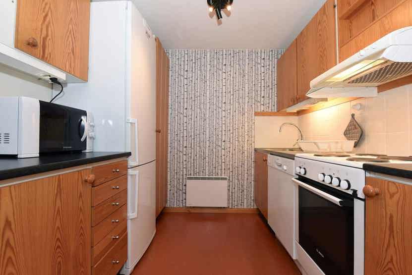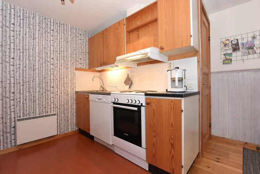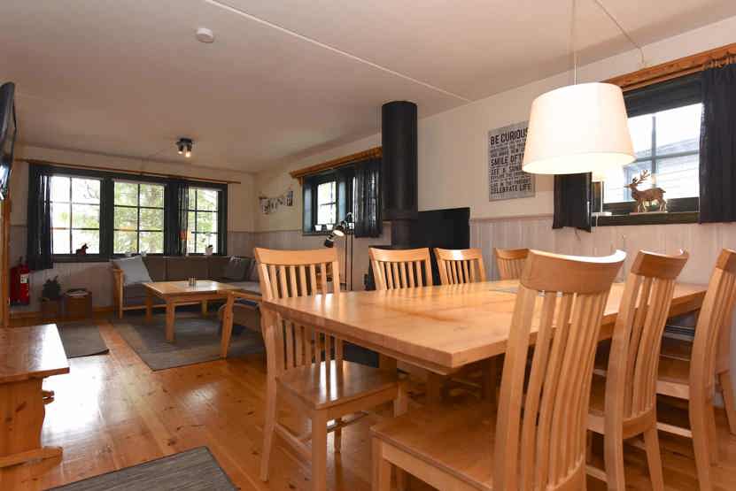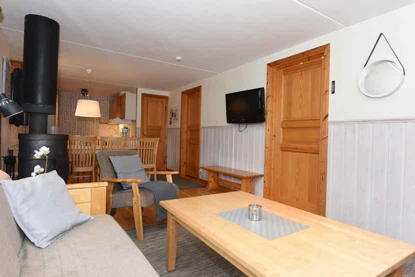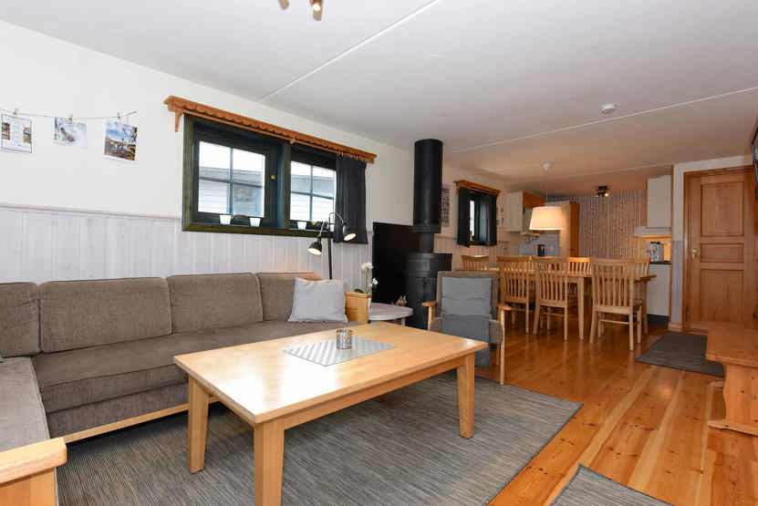 Opholdsstue med køkkenafdeling. TV, brændeovn (brænde indgår ikke), tørreskab, rum til skiudstyr, altan (skovles ikke), 1 parkeringsplads.