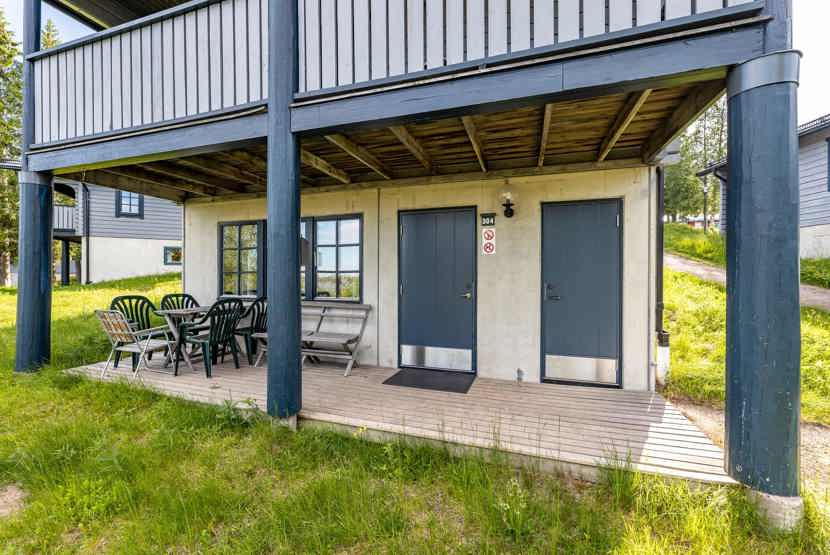 Blå Byn ligger i Lindvallen. Stuelejlighed, 8 sengepladser, 56 m², alrum med køkkenafdeling, 2 soveværelser, 1 bruser, 1 WC, sauna.