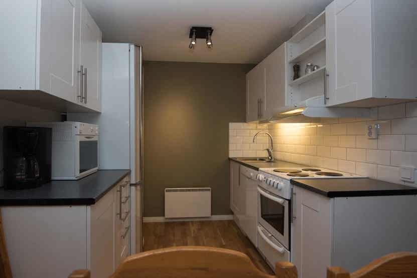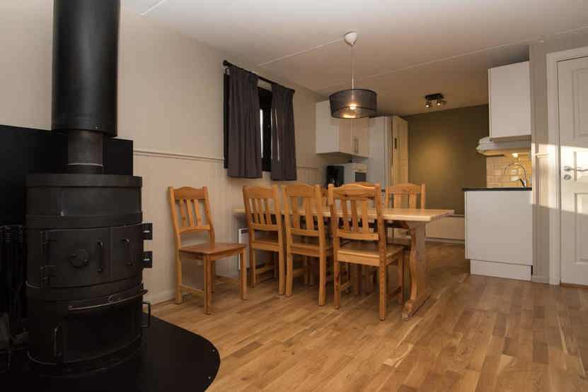 Opholdsstue med køkkenafdeling. TV, brændeovn (brænde indgår ikke), tørreskab, rum til skiudstyr, altan (skovles ikke), 1 parkeringsplads.