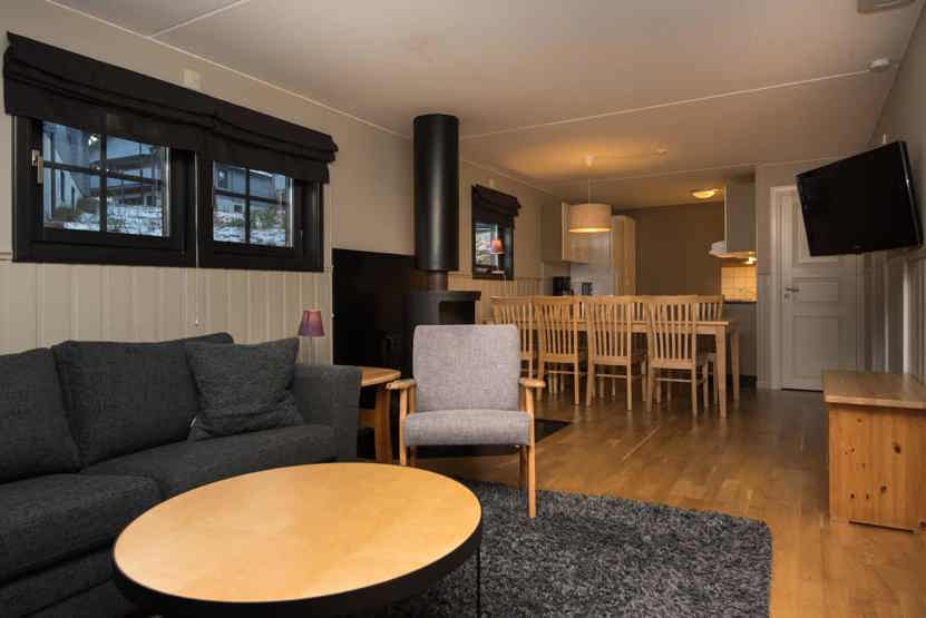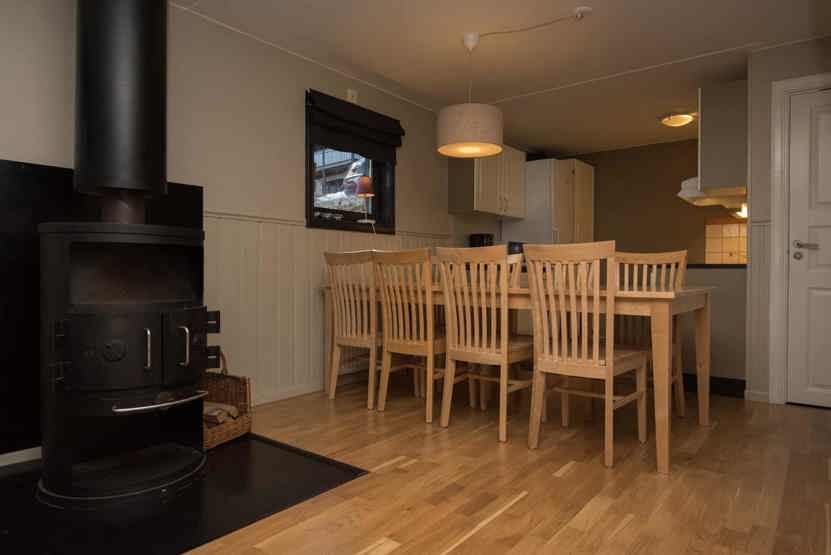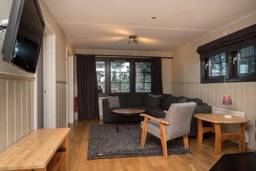 Opholdsstue med køkkenafdeling. TV, brændeovn (brænde indgår ikke), tørreskab, rum til skiudstyr, altan (skovles ikke), 1 parkeringsplads.