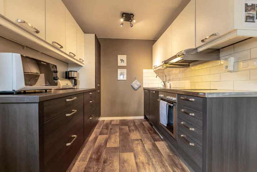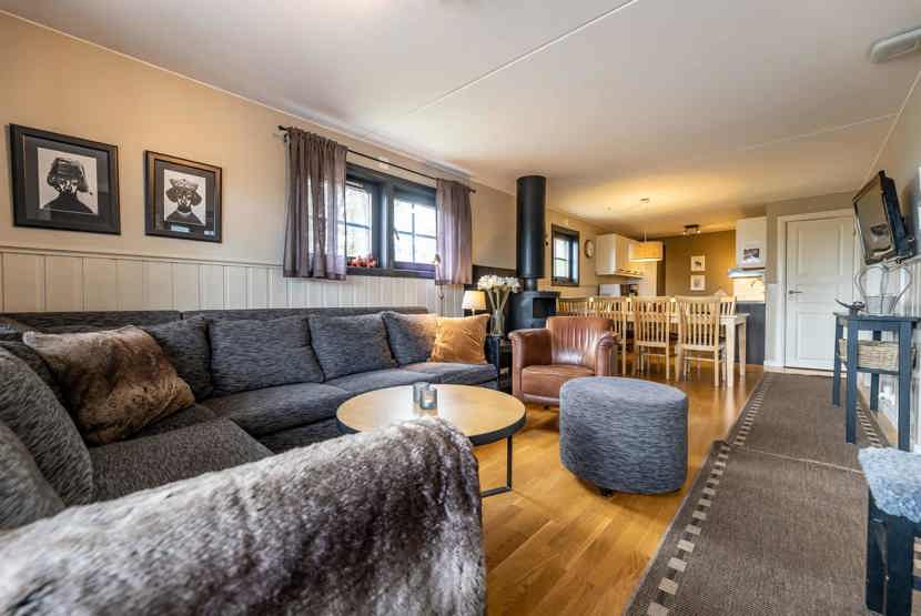 Opholdsstue med køkkenafdeling. TV, brændeovn (brænde indgår ikke), tørreskab, rum til skiudstyr, altan (skovles ikke), 1 parkeringsplads.