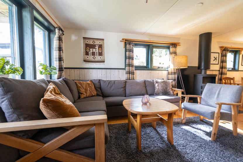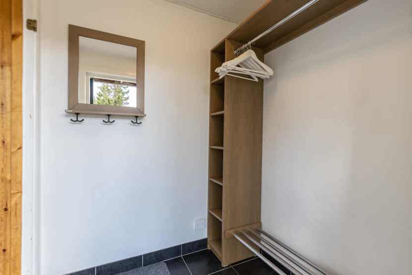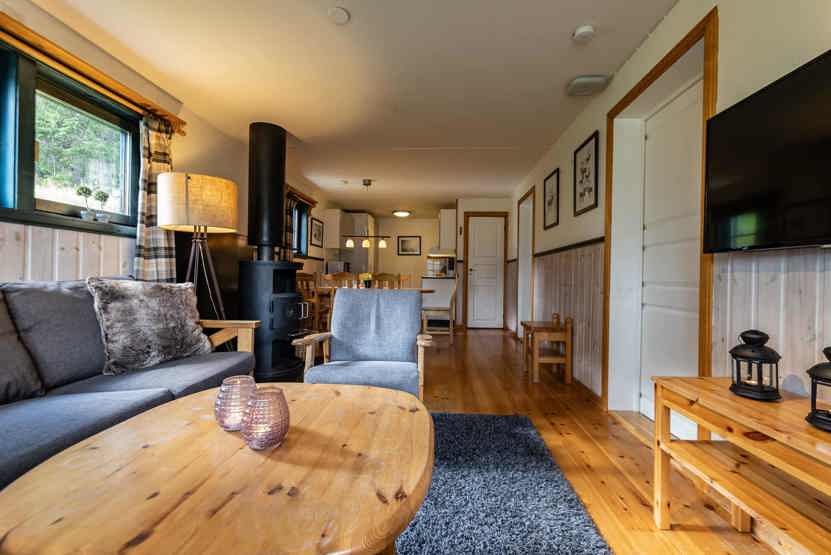 Opholdsstue med køkkenafdeling. TV, brændeovn (brænde indgår ikke), tørreskab, rum til skiudstyr, altan (skovles ikke), 1 parkeringsplads.