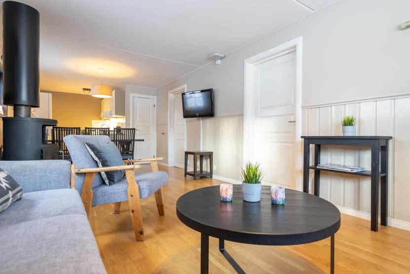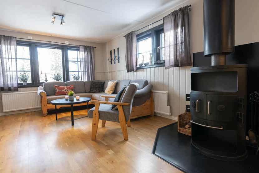 Opholdsstue med køkkenafdeling. TV, brændeovn (brænde indgår ikke), tørreskab, rum til skiudstyr, altan (skovles ikke), 1 parkeringsplads.