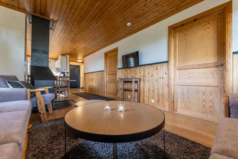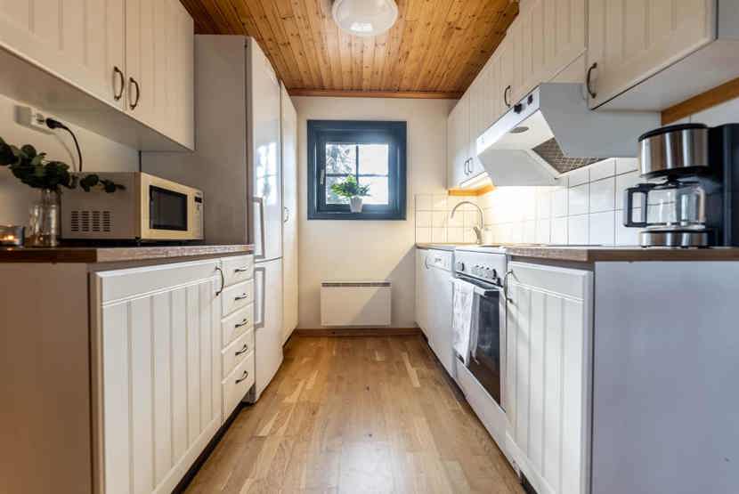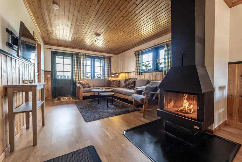 Opholdsstue med køkkenafdeling. TV, brændeovn (brænde indgår ikke), tørreskab, rum til skiudstyr, balkon, 1 parkeringsplads.
