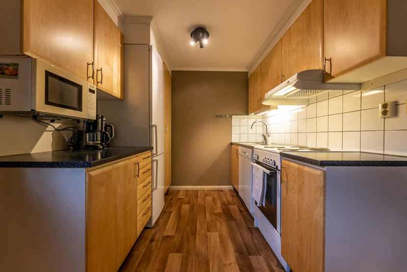 Opholdsstue med køkkenafdeling. TV, tørreskab, rum til skiudstyr, altan (skovles ikke), 1 parkeringsplads.