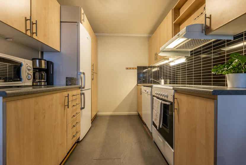 Opholdsstue med køkkenafdeling. TV, tørreskab, rum til skiudstyr, altan (skovles ikke), 1 parkeringsplads.