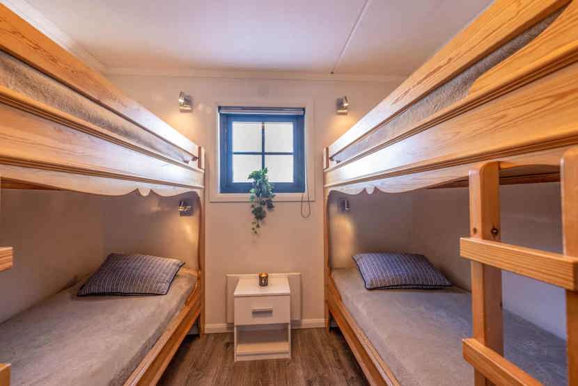 Soveværelse-1= 1 køjeseng hvor både over og underkøje er 90 cm bred. Soveværelse-2= 2 køjesenge. Soveværelse-3= 1 dobbeltseng 160 cm bred.