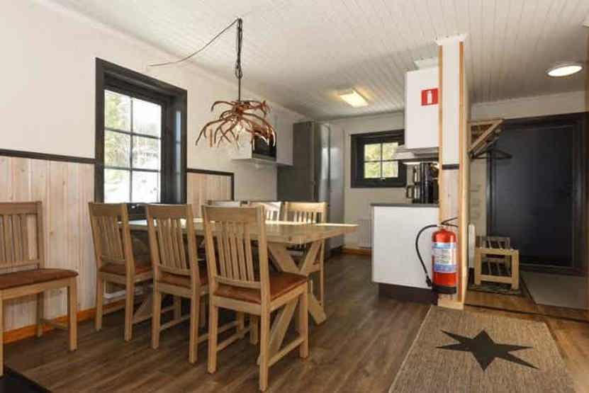 Opholdsstue med køkkenafdeling. TV, brændeovn (brænde indgår ikke), tørreskab, rum til skiudstyr, balkon, 1 parkeringsplads.