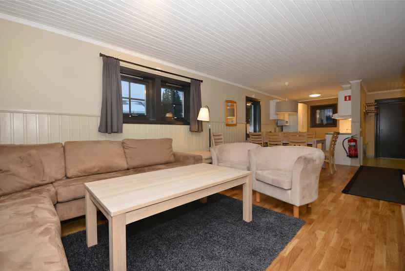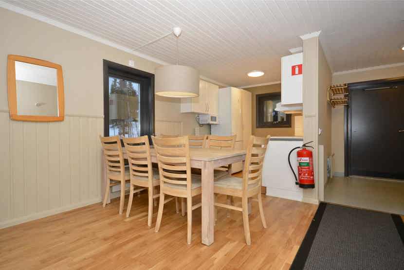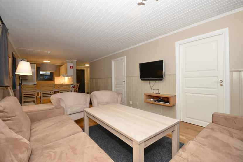 Opholdsstue med køkkenafdeling. TV, tørreskab, rum til skiudstyr, balkon, 1 parkeringsplads.
