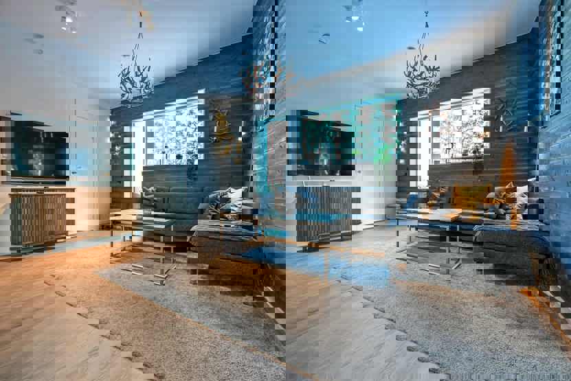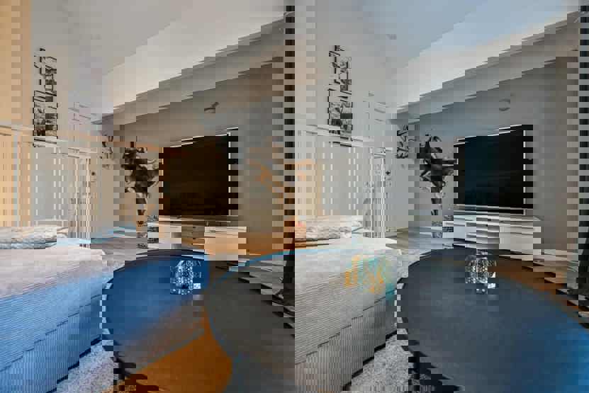 TV, kombineret vaskemaskine/tørretumbler, tørreskab, rum til skiudstyr, 1 parkeringsplads.