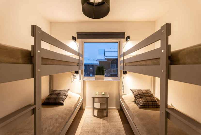 Soveværelse-1= 1 dobbeltseng 180 cm bred. Soveværelse-2= 2 køjesenge.
