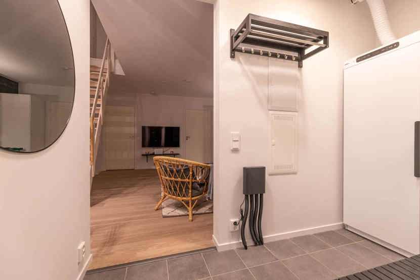 Opholdsstue med køkkenafdeling. TV, 1 højstol, tørreskab, vaskemaskine, tørretumbler, skotører, rum til skiudstyr, balkon, 1 parkeringsplads.