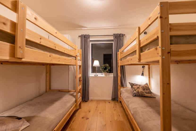 Soveværelse-1= 1 dobbeltseng 160 cm bred. Soveværelse-2= 2 køjesenge.