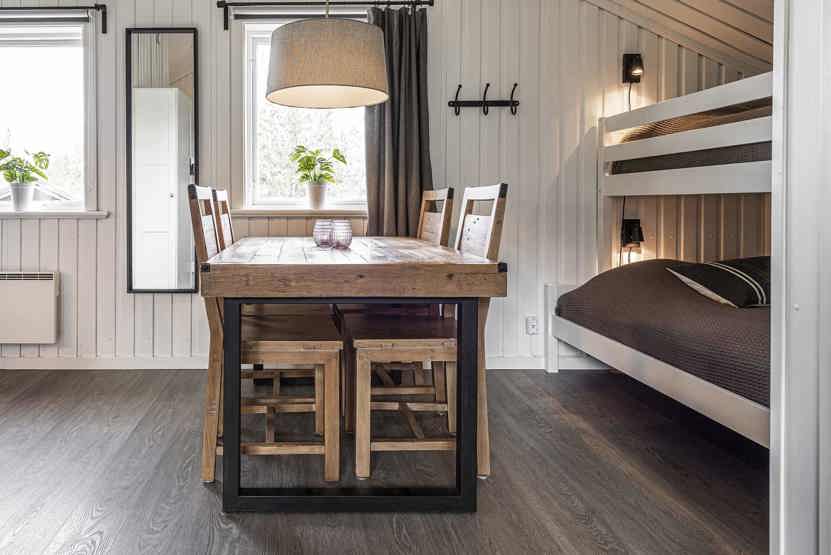 Opholdsstue med køkkenafdeling, sovesofa til 2 personer. TV, tørreskab, rum til skiudstyr, altan (skovles ikke), havem¢bler.