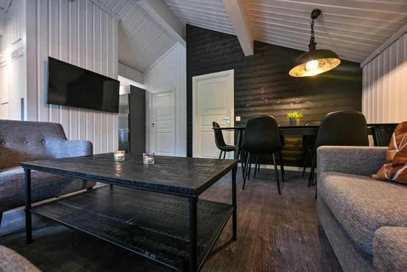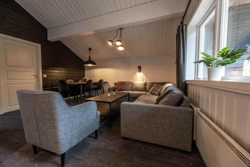 Opholdsstue med køkkenafdeling. TV, tørreskab, rum til skiudstyr, altan (skovles ikke).