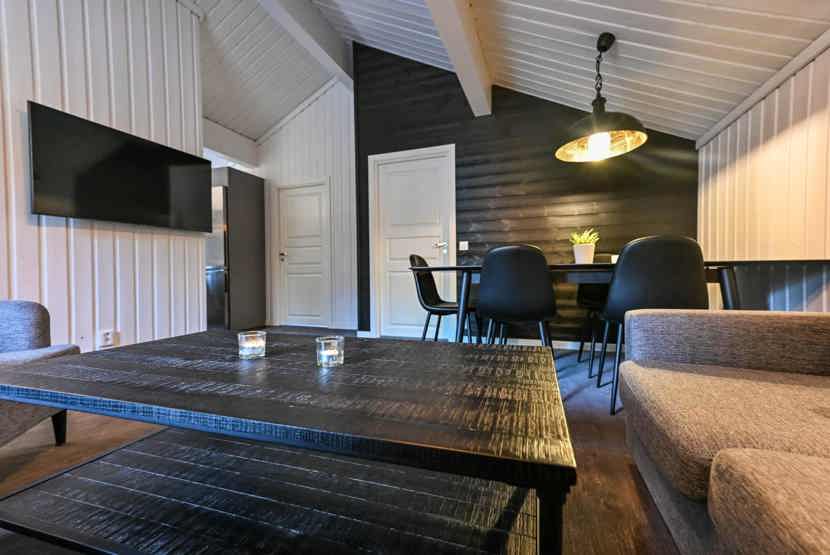 Opholdsstue med køkkenafdeling. TV, tørreskab, rum til skiudstyr, altan (skovles ikke).
