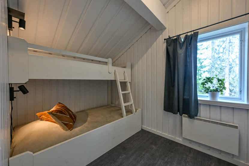 Soveværelse-1= 1 køyeseng med 120 cm bred underkøye og 90 cm bred overkøye. Soveværelse-2= 1 dobbeltseng 160 cm bred.
