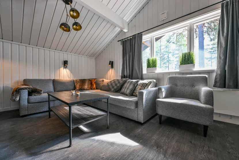Opholdsstue med køkkenafdeling. TV, tørreskab, rum til skiudstyr, altan (skovles ikke).