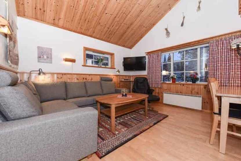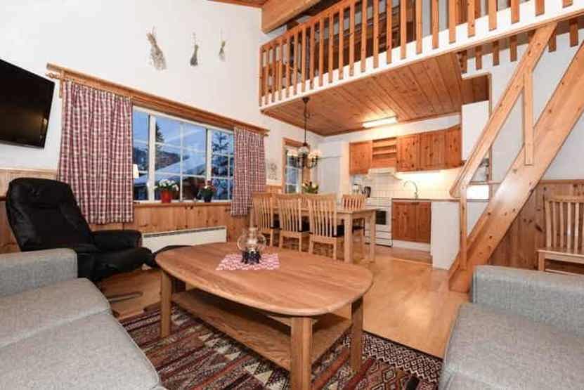 Opholdsstue med køkkenafdeling. TV, tørreskab, rum til skiudstyr, altan (skovles ikke).