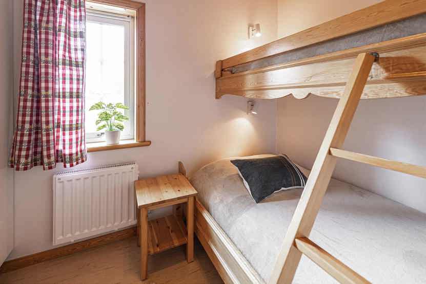 Soveværelse-1= 1 køjeseng. Hems 1= 2 køjesenge med 120 cm bred underkøje .