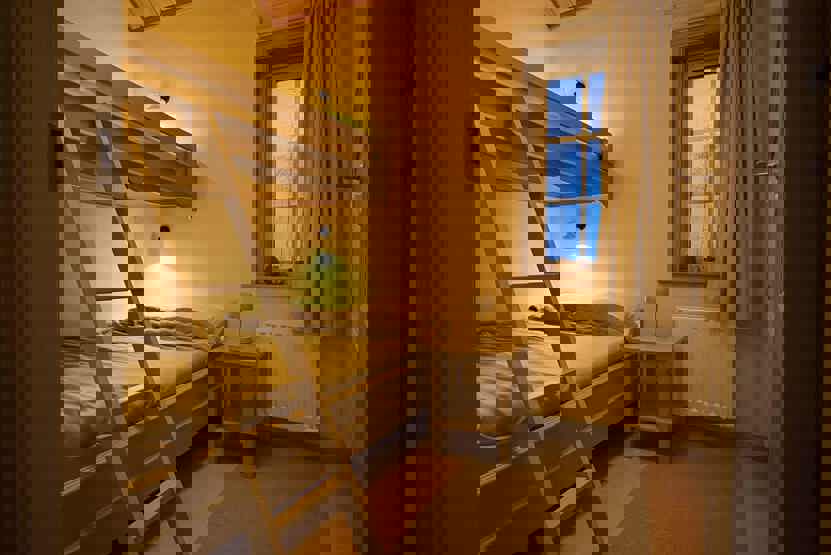 Soveværelse-1= 1 køjeseng. Hems 1= 2 køjesenge med 120 cm bred underkøje .