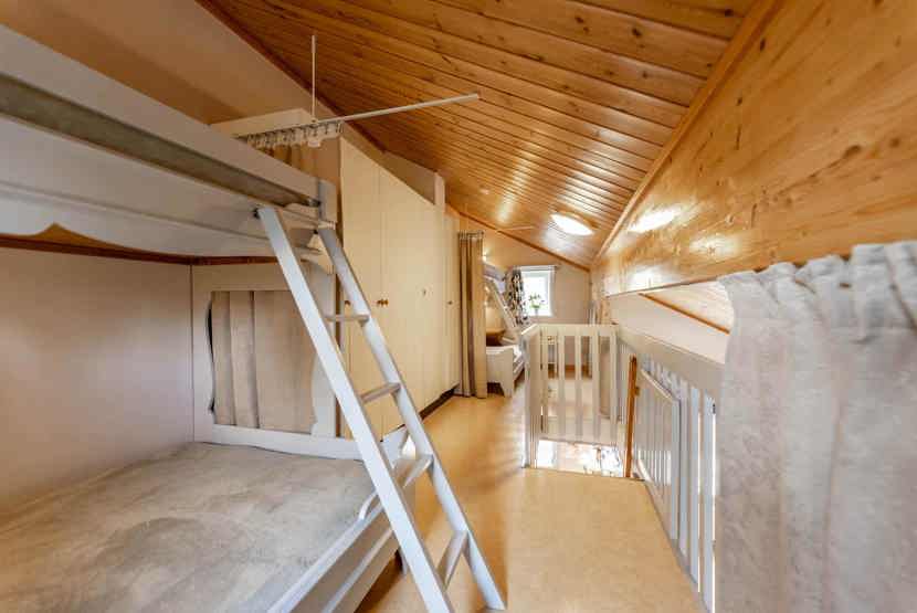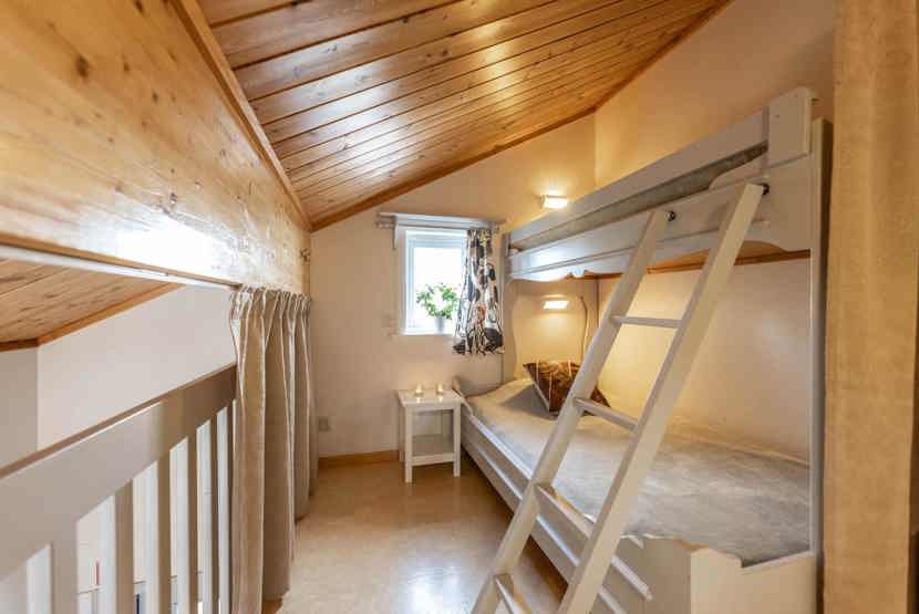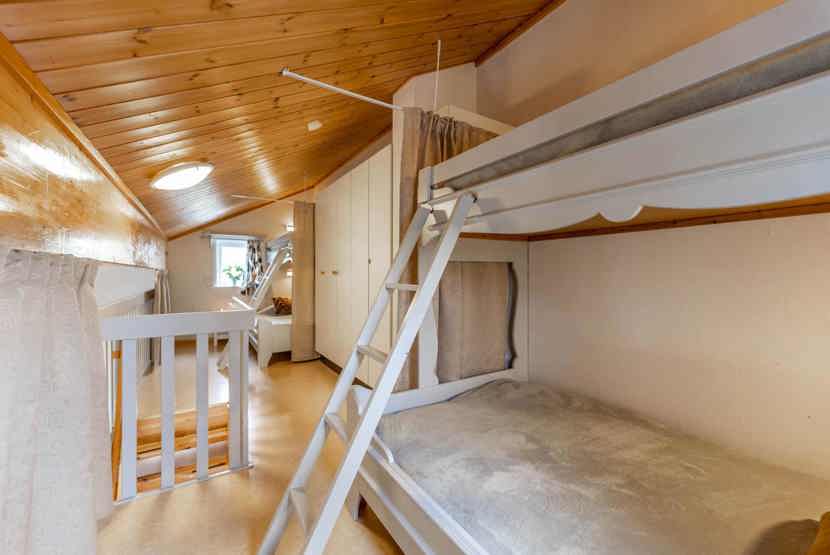 Soveværelse-1= 1 køjeseng. Hems 1= 2 køjesenge med 120 cm bred underkøje .