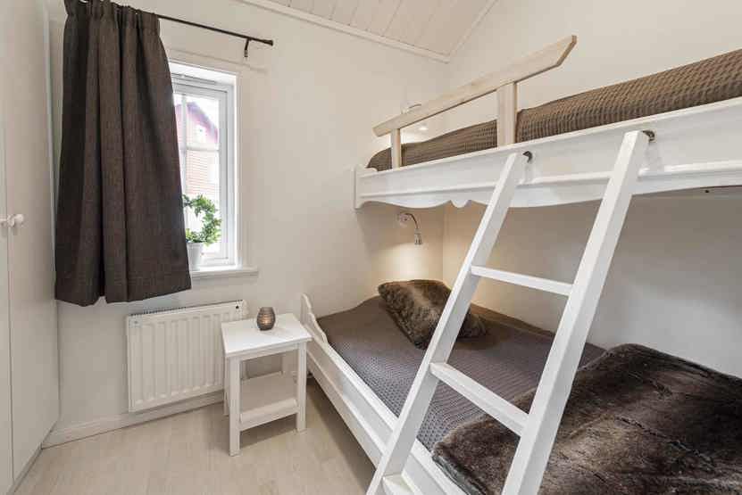 Soveværelse-1= 1 køjeseng. Hems 1= 2 køjesenge med 120 cm bred underkøje .