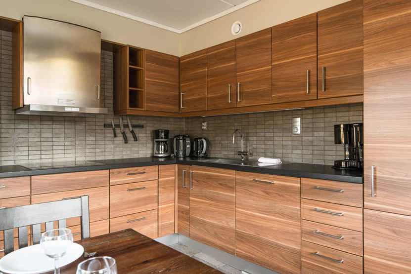 Køkkenet indeholder: kogeplade, indbygningsovn, køleskab, frys, opvaskemaskine, microovn.