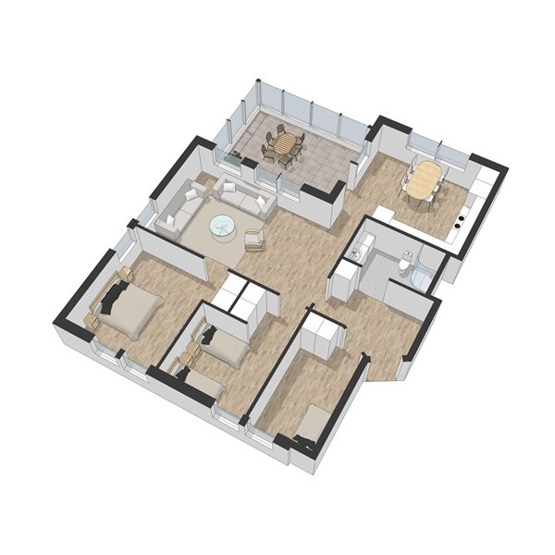 Soveværelse-1= 1 dobbeltseng. Soveværelse-2= 2 enkeltsenge. Soveværelse-3= 1 køjeseng.