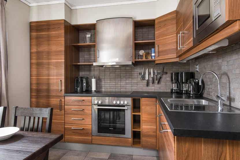 Køkkenet indeholder: keramiske kogeplader med ovn, køleskab, frys, opvaskemaskine, microovn.