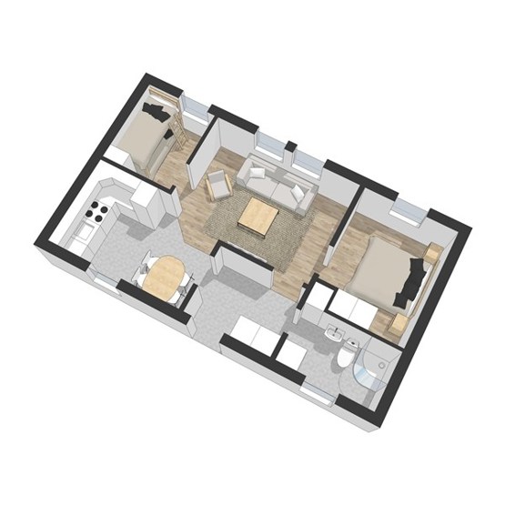 Experiumtorget ligger i Lindvallen. Lejlighed, 4+1 sengepladser, 45 m², opholdsstue, køkken, 2 soveværelser, 1 bruser, 1 WC.