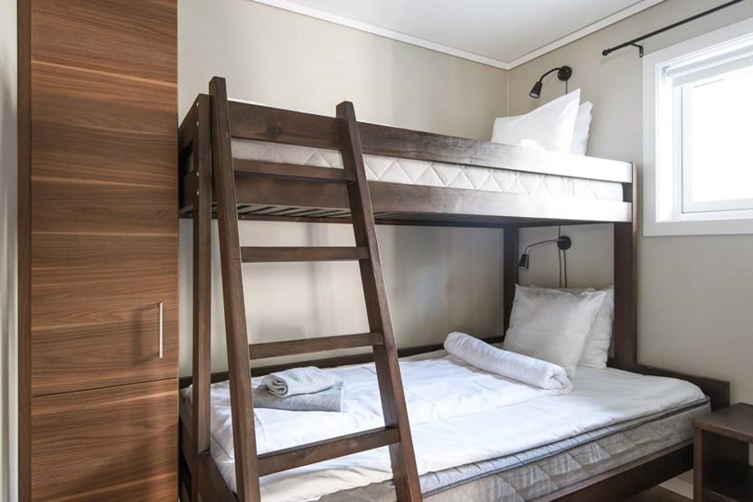 Soveværelse-1= 1 dobbeltseng. Soveværelse-2= 1 køjeseng med 120 cm bred underkøje .