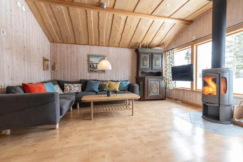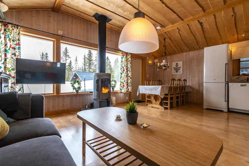 TV, brændeovn (brænde indgår ikke), vaskemaskine, tørreskab, altan (skovles ikke), fælles rum til skiudstyr, hytten ligger på samme grund som 9 B.
