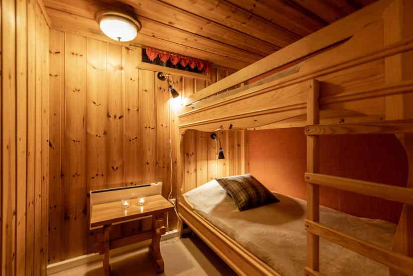 Alkove-1 = 1 køjeseng 80 cm x 195 cm lang. Alkove-2 = 1 køjeseng 105 cm bred.