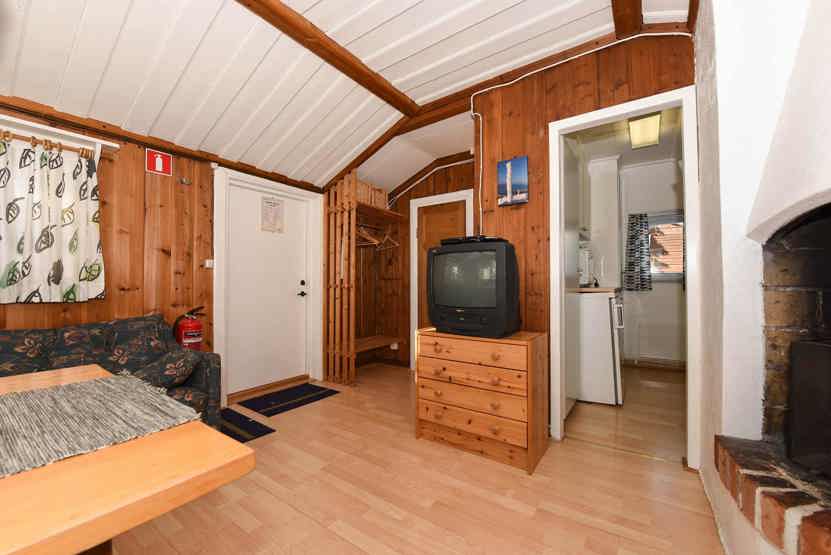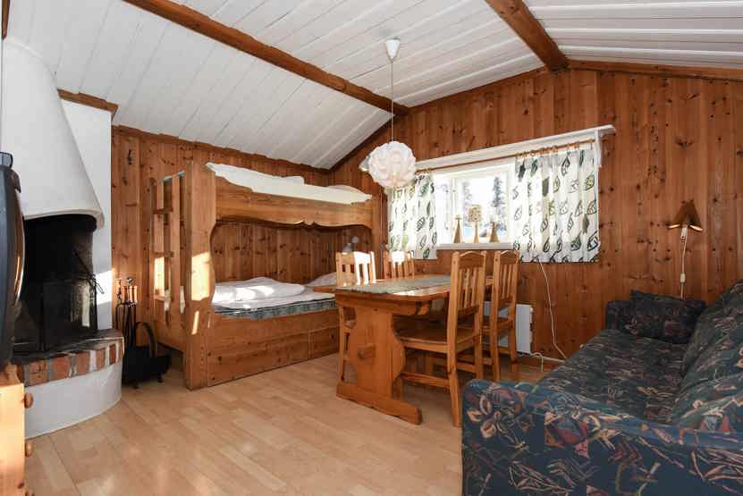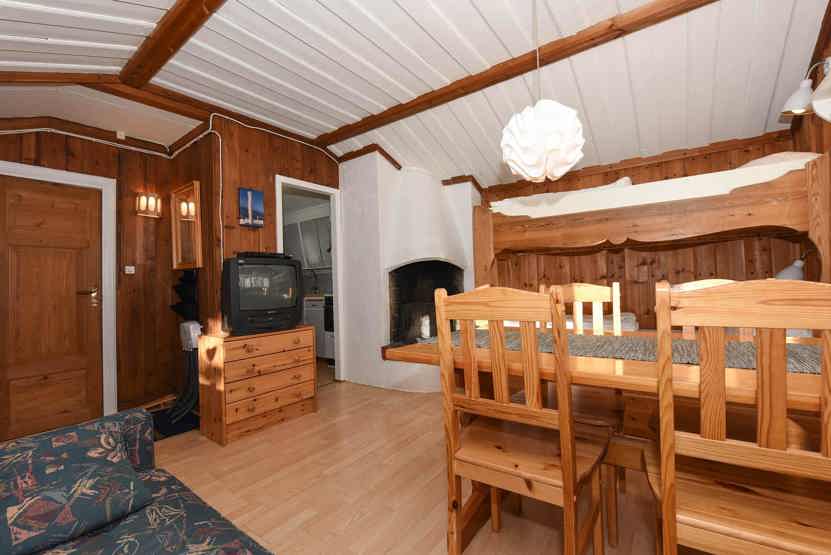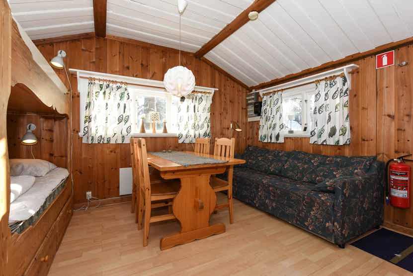 Opholdsstue med køkkenafdeling, 1 køjeseng, sovesofa til 2 personer.