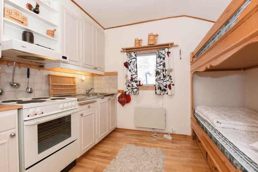 Opholdsstue med separat køkken med 1 køjeseng, sovesofa til 2 personer.