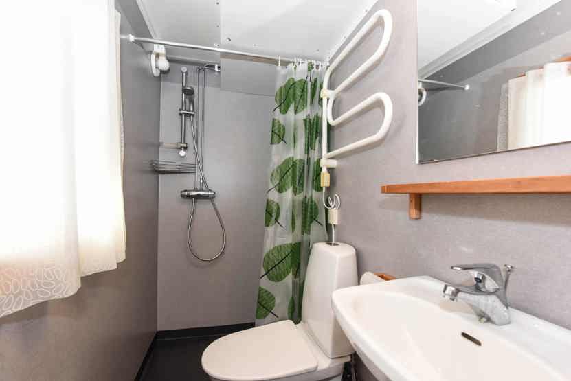 Badeværelset-1 = bruse/wc/håndklædetørrer.