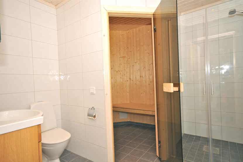 Badeværelset-1 = bruse/wc/sauna. Badeværelset-2 = bruse/wc.