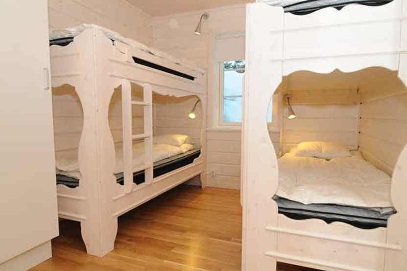 Soveværelse-1= 1 dobbeltseng. Soveværelse-2= 1 køjeseng med 140 cm bred underkøje . Soveværelse-3= 2 køjesenge.