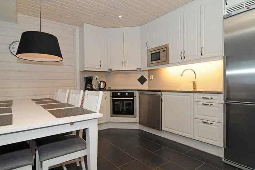 Køkkenet indeholder: keramiske kogeplader med ovn, køleskab, frys, opvaskemaskine, microovn.