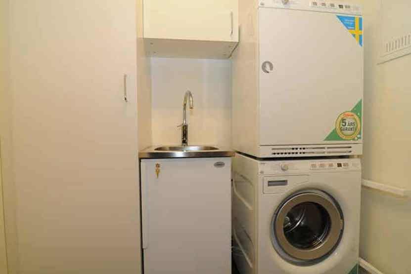 TV, brændeovn (brænde indgår ikke), 1 højstol, 1 barneseng, vaskemaskine, tørretumbler, tørreskab, rum til skiudstyr.