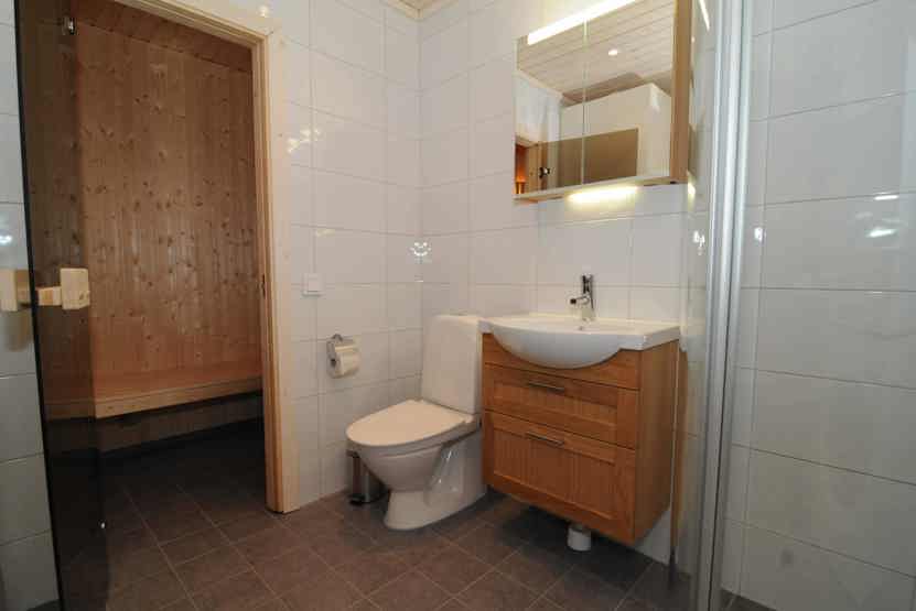 Badeværelset-1 = bruse/wc/sauna. Badeværelset-2 = bruse/wc.