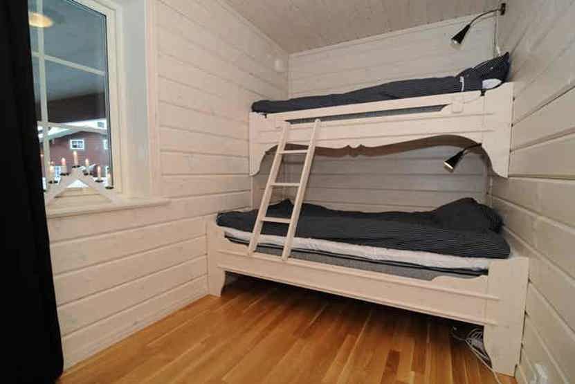 Soveværelse-1= 1 dobbeltseng. Soveværelse-2= 1 køjeseng med 140 cm bred underkøje . Soveværelse-3= 2 køjesenge.