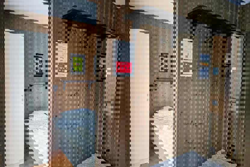 Soveværelse-1= 1 dobbeltseng som kan laves om til to enkeltsenge. Soveværelse-2= 1 køyeseng med 120 cm bred underkøye og 80 cm bred overkøye.