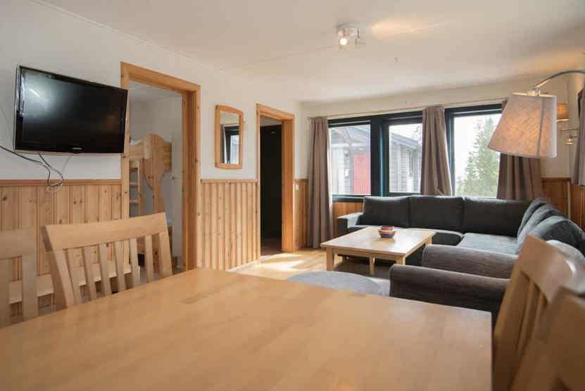 Fjällbyn ligger i Lindvallen. Stuelejlighed, 8 sengepladser, 56 m², alrum med køkkenafdeling, 2 soveværelser, 1 bruser, 1 WC.