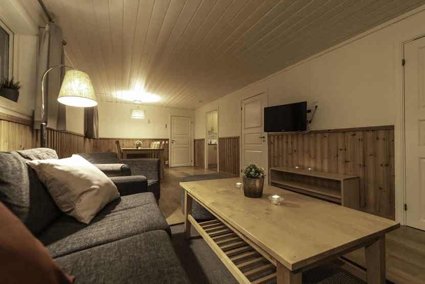 Opholdsstue med køkkenafdeling. TV, tørreskab, rum til skiudstyr, udeplads (skovles ikke).