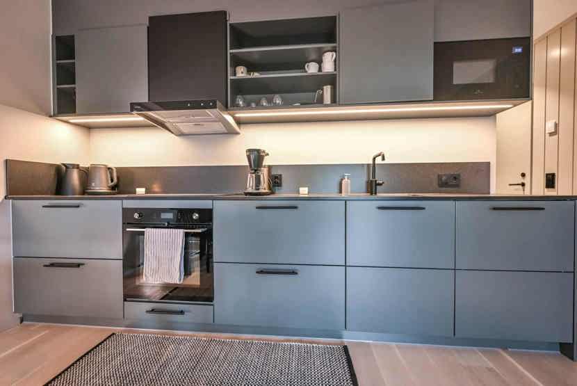 Køkkenet indeholder: elkomfur med ovn, køleskab med frostboks, opvaskemaskine, microovn.