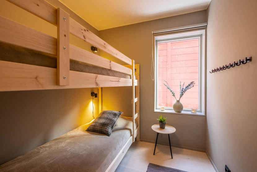 Soveværelse-1= 1 dobbeltseng 160 cm bred. Soveværelse-2= 1 køjeseng hvor både over og underkøje er 90 cm bred.