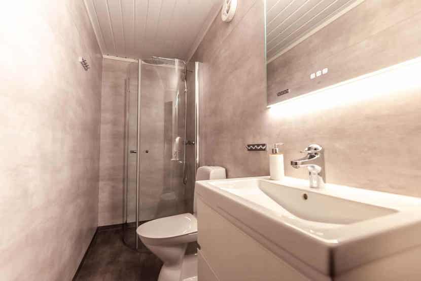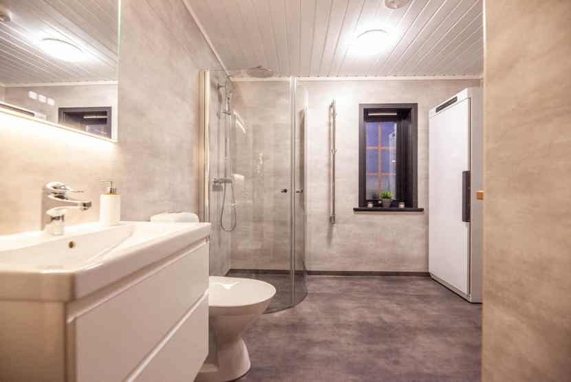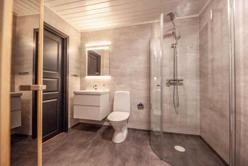 Badeværelset-1 = bruse/wc/sauna. Badeværelset-2 = bruse/wc.